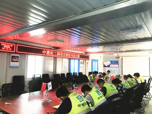 由项目部统一购买书法练习纸,要求参赛人员一律使用钢笔或中性笔,在《念奴娇•赤壁怀古》、《沁园春•雪》、《沁园春•长沙》、《定风波•三月七日》四首古诗词中自选书写。项目经理陈祥海与领导班子纷纷参与其中,整个比赛氛围活跃。