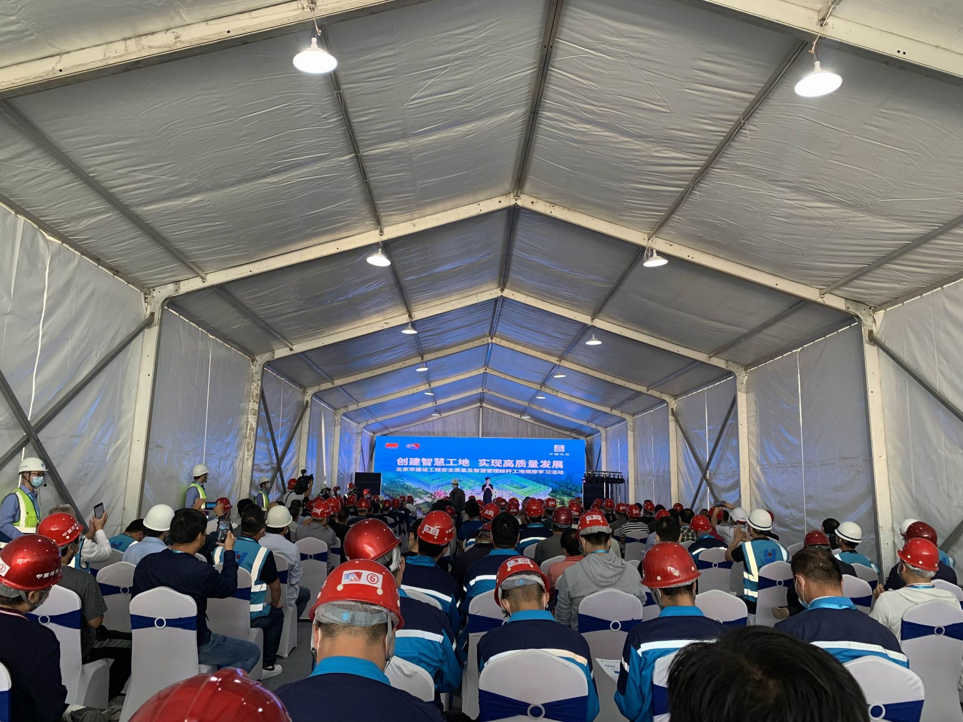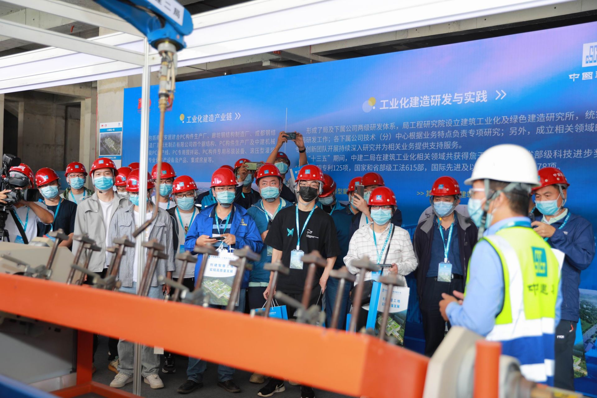 9月29日,中国建筑建证百年 同心筑梦之发展筑行 接续奋斗征程开放日78场暨北京市建设工程安全质量及智慧管理标杆工地观摩学习活动在中建二局北京安贞东方医院项目举行。市住房城乡建设委安全质量监督总站长、二级巡视员魏吉祥出席活动并讲话。全市部分建设单位、施工单位、监理单位相关负责人及各工程项目相关负责人等600余人参加了此次活动。