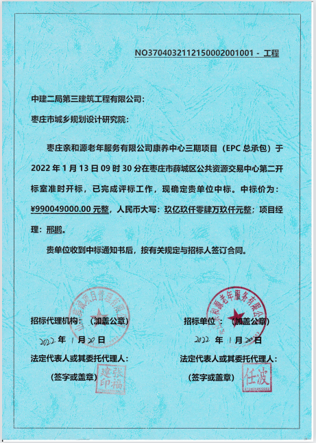 3月10日,三公司中标合同总额9.9亿元枣庄亲和源康养中心三期项目。